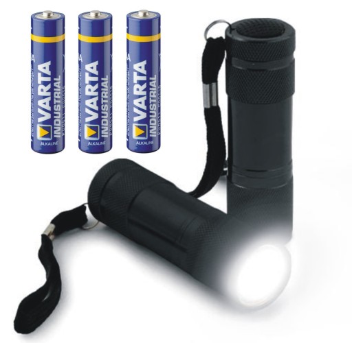 МІНІ-КИШЕНЬКОВИЙ АЛЮМІНІЄВИЙ ЛІХТАРИК 9 x LED + 3x ALKAIC БАТАРЕЇ