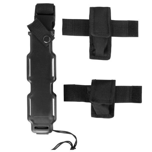 Ніж з композитними піхвами, оснащений двома нейлоновими кишенями.