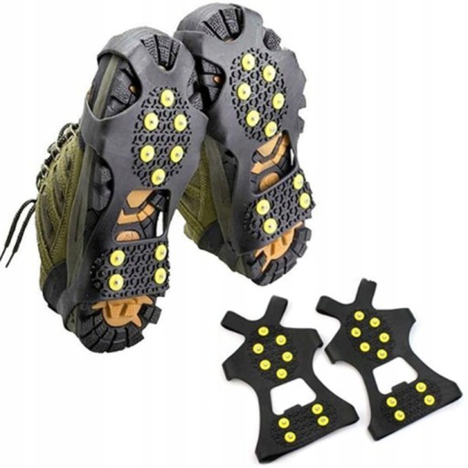 Протиковзкі накладки на взуття - ідеальне рішення для людей, які активно проводять час в горах. Скоби оснащені 10 шипами, які міцно прилягають до землі, додатково накладки виготовлені з нековзкого матеріалу.