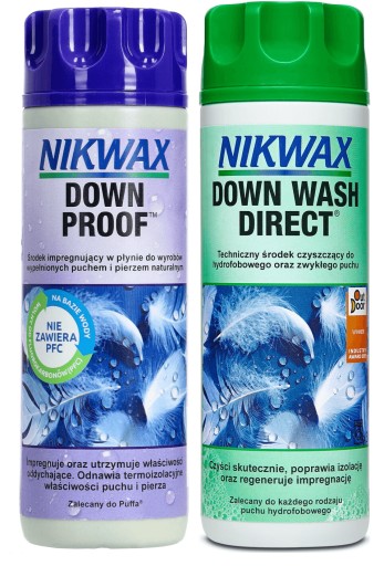 NIKWAX Down Wash Direct – простий у використанні технічний засіб для чищення одягу та спальних мішків, що містить гідрофобний або звичайний пух.