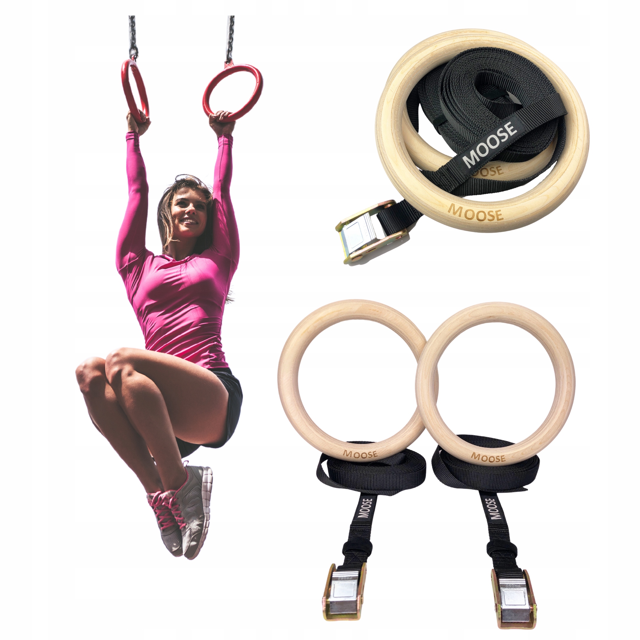 - Oryginalny zestaw kół gimnastycznych MOOSE Sports z dedykowanymi taśmami