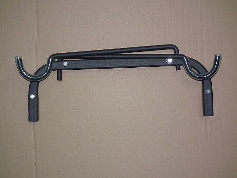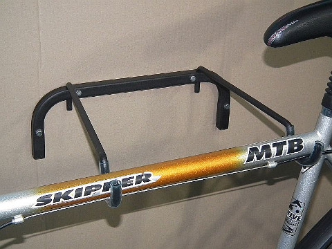Ідеальна вішалка для підвішування велосипеда за раму. Вішалка виготовлена зі сталевого профілю 20х20 мм. Кронштейни зі сталевого прута 10 мм. Пластикові кришки гачків захищають раму від пошкоджень. Відкидні гаки не обмежують простір в гаражі.