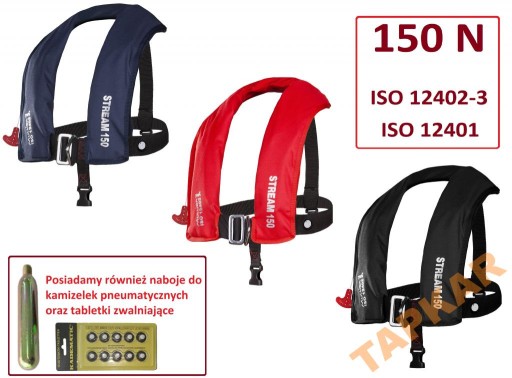 Mullion Stream 150N — пневматичний жилет загального призначення з інтегрованими ременями безпеки, розроблений для постійного носіння. Жилет має класичну підковоподібну форму, має асиметричну єдину камеру плавучості, що забезпечує ідеальне прилягання до тіла та оптимальне положення вижилого у воді обличчям догори.