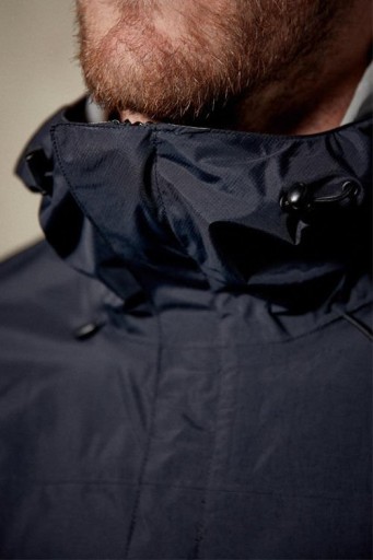 Куртка виготовлена з матеріалу помірної товщини. Щоб забезпечити оптимальну довговічність, все було зроблено за технологією ripstop. Сучасна мембрана Pertex Shield® +2.5L відповідає за дуже високу водостійкість. Він підключається безпосередньо до зовнішнього матеріалу. Зсередини вона була закріплена тонким шаром, що дозволило виключити окрему підкладку. Всі шви ретельно проклеєні, щоб усунути місця, куди вода могла легко потрапити всередину. Таке рішення економить багато місця після упаковки.