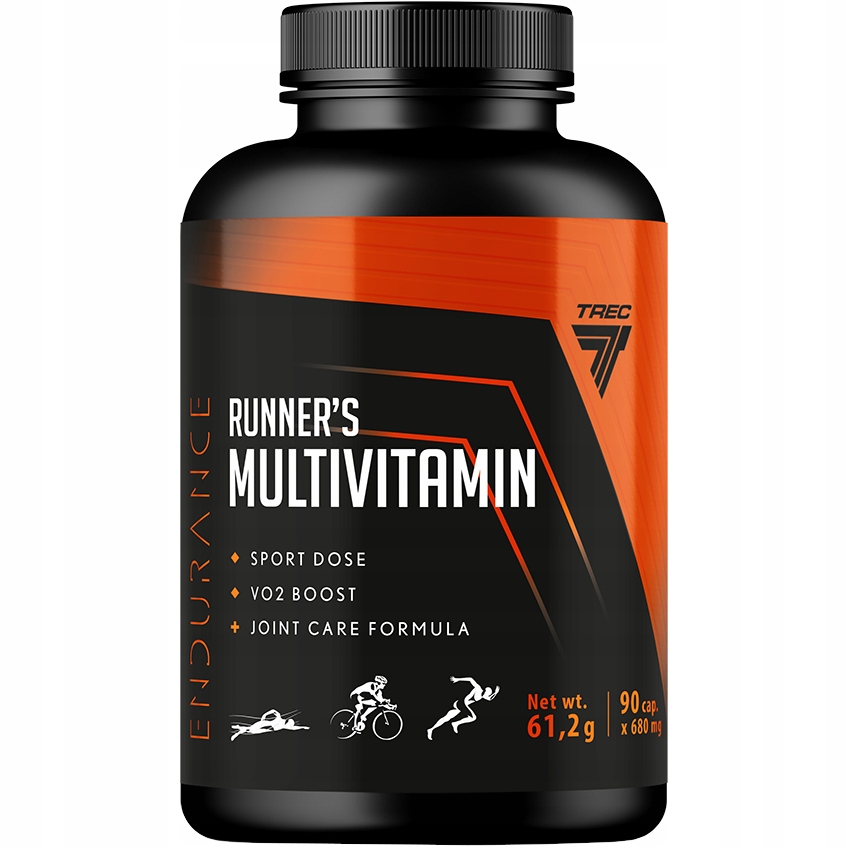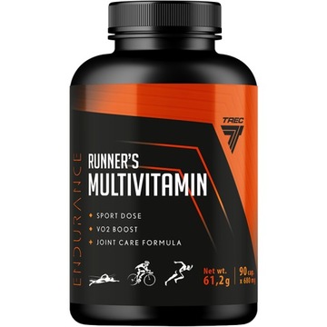 Trec Runner’s Multivitamin to suplement diety w postaci kapsułek zawierający kompleks witamin i składników mineralnych oraz L-cytrulinę, L-argininę, beta-alaninę, glukozaminę i kwas hialuronowy. Produkt polecany jest osobom uprawiającym sporty wytrzymałościowe i wytrzymałościowo-siłowe.