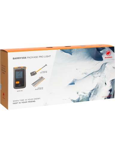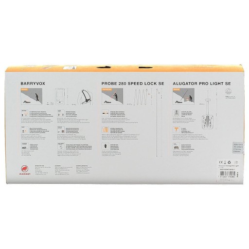 Лавинний детектор Mammut Barryvox Package Pro Light включає в себе: телескопічний зонд Probe 280, лавинний маяк Barryvox і телескопічну лопату Alugator Pro Light. Цей набір Mammut призначений для швидкого та ефективного порятунку.