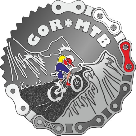 Ззаду фото дороги в напрямку Бабої Гори та ще 3 градуси значка GOR і клубного значка KZKE.