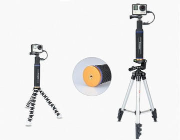 ✅ Zawiera długą śrubę do przymocowania kamery sportowej do monopodu.
