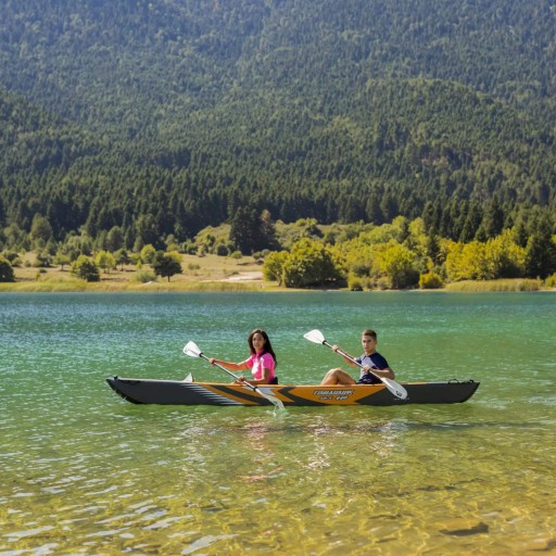 У комплекті з каяком ви знайдете, серед іншого, 2 весла, насос, 2 ласти та 2 сидіння.