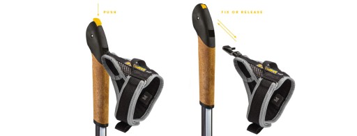 Інноваційний ремінь, розроблений для палиць для скандинавської ходьби. Він має світловідбиваючі шви для гарної видимості в темряві та систему швидкого зняття Top-Click для швидкого зняття ремінця одним пальцем.