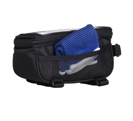Посилена і містка велосипедна сумка з кишенею для телефону, яка кріпиться до рами за допомогою липучки + гачок для керма, забезпечить відмінну стійкість і безпеку. Незамінний під час тривалих подорожей на велосипеді! Виріб виготовлено з водостійкого матеріалу.