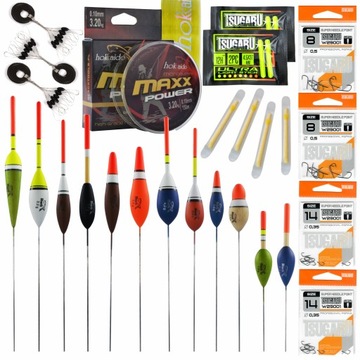 Набор поплавков с аксессуарами компании Хоккайдо. Комплект, состоящий из всего, что нужно для spławikowania. Разнообразие поплавков позволяет ловить на любой водной акватории (реки , озера , пруды, размножения и т. д.) на легкие и тяжелые приманки. В наборе мы найдем леску для вооружения набора , stoperki для настройки грунта и крючки двух размеров. Светлячки рыболовные с gumeczką позволят ловить ночью.
