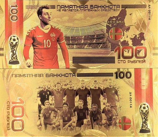 Продам красиву позолочену банкноту номіналом 100 рублів із зображенням Крістіана Еріксена.