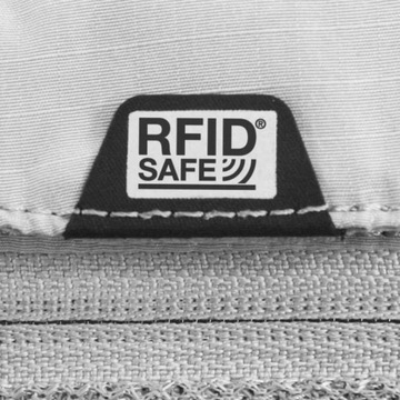Specjalne kieszenie chronią karty oraz dokumenty wykorzystujące technologię RFID przed zeskanowaniem i kradzieżą tożsamości. Blokują częstotliwości od 10MHz do 3GHz używane w większości elektronicznych dokumentów i kartach płatniczych.