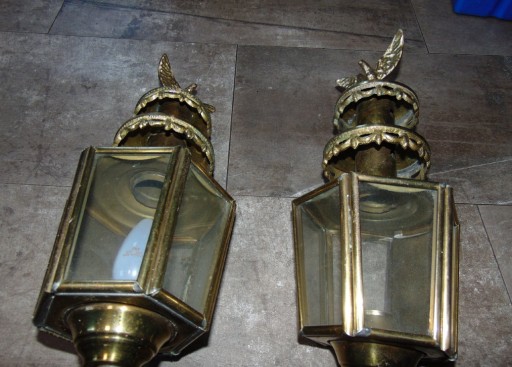 Настінні світильники арт-деко, латунь, карета, ціна за 2 шт., розміри: висота 57 см, ширина 16 см, глибина 18 см., на інших моїх аукціонах ви знайдете інші настінні світильники, світильники, люстри, лампи, ролики, накладки на стелю. , ланцюги, аплікації килимки, вивіски, дверні ручки, таблички для меблів, карнизи, абажури і все необхідне для світильників, світильників, люстр, бра, гасових ламп, дивіться інші мої аукціони, у мене близько 3000 аукціонів, все як в фотографії, прочитайте сторінку про продаж .- Купуючи, ви приймаєте умови, що містяться в ньому