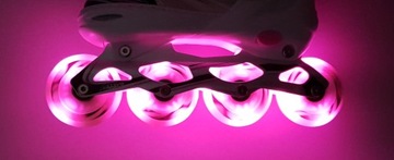 - Rolki wyposażone zostały w świecące kółka, które świecą poprzez wprowadzenie ich w ruch.