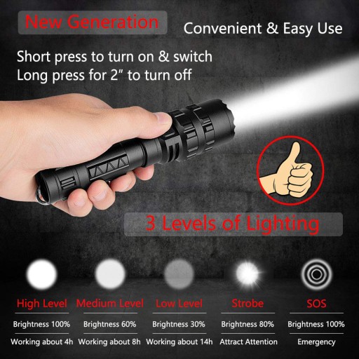 У порівнянні з T6, яскравість нашого світлодіодного ліхтарика зросла на 20%, а відстань освітлення зросла на 50%. Виготовлені на всесвітньо відомому мікросхемі CREE Advanced Wick Chip L2, наші ліхтарики можуть легко освітлювати всю кімнату або фокусуватися на об’єктах на відстані 1800 футів у темряві.