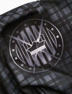 303. Dywizjon Myśliwski Warszawski im. Tadeusza Kościuszki to legendarna jednostka polskiego lotnictwa, prawdziwa duma i chluba, która zasłynęła przede wszystkim w Bitwie o Anglię, ale także m.in. biorąc udział w Rajdzie na Dieppe i inwazja na Niemcy. W wspominanej kampanii powietrznej nad Anglią stoczonej między aliantami a Luftwaffe, Dywizjon 303. był jednym z najskuteczniejszych dywizjonów myśliwskich, biorąc udział w kluczowych potyczkach z Niemcami. Tłem prezentowanego wzoru jest elegancka krata w odcieniach grafitowych. Po jednej ze strony znajduje się tarcza Dywizjonu 303 w wariancie monochromatycznym, z dodatkowo akcentującym ją efektem połysku.