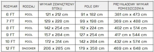 - ВИБІР РОЗМІРУ СТОЛУ: розмір столу залежить від розміру кімнати, яку ми маємо. Щоб було комфортно пересуватися по столу, навколо нього має бути приблизно 140 см вільного простору, тому при виборі розміру столу ми додаємо 140 см до ігрового поля. Таким чином ми підберемо правильний розмір столу для нашої кімнати. Якщо у нас маленька кімната і ми хочемо великий стіл, ми можемо піти на компроміс і використовувати коротші палиці. Як виробник, ми можемо виготовити будь-який стіл за конкретними розмірами, вказаними замовником.