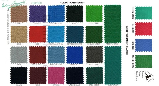 Стандартно ми пропонуємо більярдне полотно 4 різних кольорів від Tournament Champion