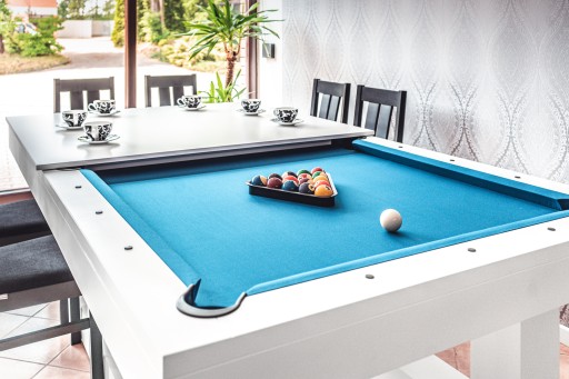 Цей професійний більярдний стіл, на якому можна зіграти більярдний турнір, можна кількома рухами трансформувати у великий конференц-або банкетний стіл, за яким комфортно розмістяться до 14 осіб.