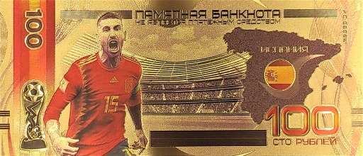Серхіо Рамос Іспанія. Красива позолочена банкнота