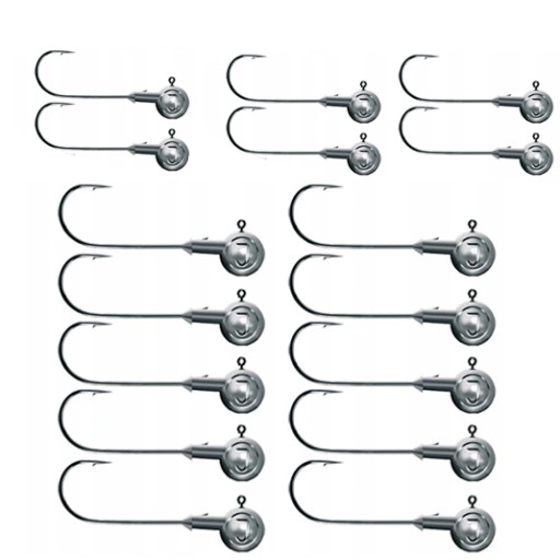 Набір з 15 джиг-головок JAXON 3 різних розмірів. Вони дозволяють вибирати вагу приманки.