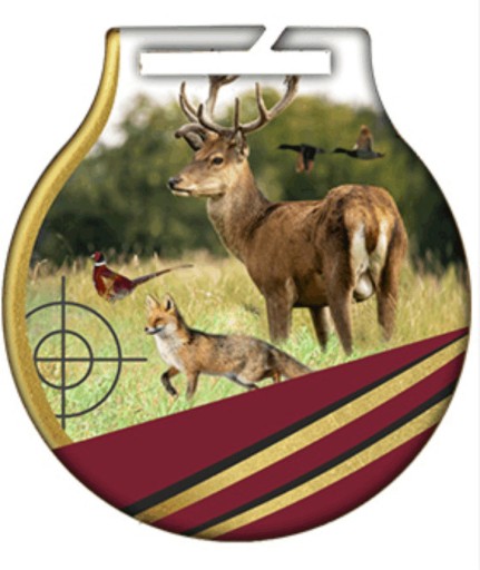 Сталева медаль з кольоровим мисливським принтом на аверсі - ви отримаєте медаль із широкою золотою, срібною або зеленою стрічкою