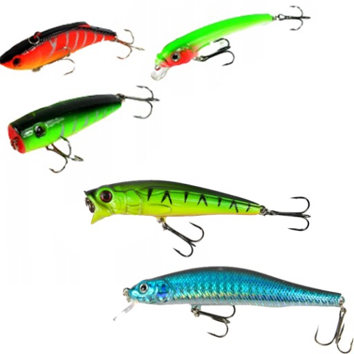Різноманітність приманок означає, що кожен рибалка знайде щось для себе. У набір входять такі приманки, як воблери, рипери, м'які приманки + аксесуари до них, листи і аксесуари - кліщі і поводки.