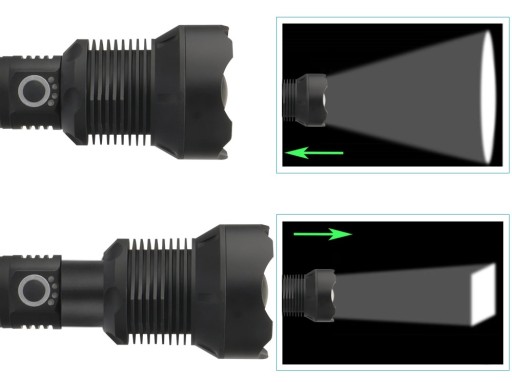Потужний ліхтарик з новим діодом XHP90. Інженери доклали багато зусиль для розробки технологічної платформи SC5. Це дозволяє виробляти світлодіоди XHP (Extreme High Power), тобто дуже високої потужності. Новий діод здатний генерувати вдвічі більше люменів, ніж структура старого покоління такого ж розміру. Ліхтарик оснащений телескопічним зумом (дозволяє регулювати пучок світла) і додатковими 4 бічними COB діодами. Діоди можуть працювати в двох режимах: сильне біле світло, біле миготливе світло).