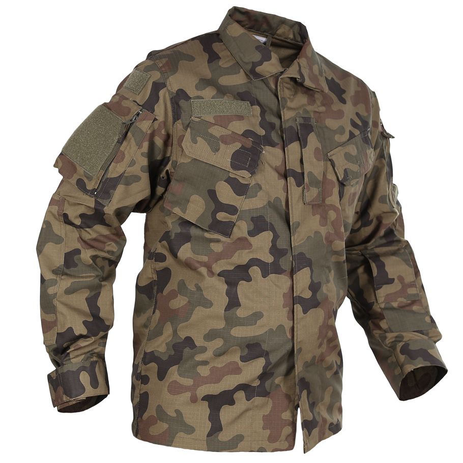 Bawełna dobrze oddycha i jest miła w dotyku. Model wz10 jest bardzo praktyczny,bluza posiada rozbudowany system kieszeni. Dwie kieszenie na piersi umieszczone skośnie, ułatwiają dostęp do zawartości, zamykane patkami na rzepy.