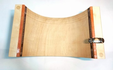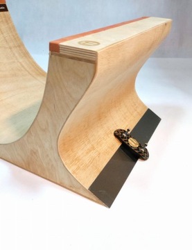 Rampa wykonana jest ze sklejki brzozowej. Wykończenie stanowią cegiełki z materiału komposite oraz stalowy rail i metalowy podjazd.