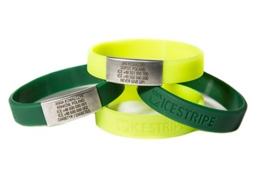 Na opasce ICEstripe Slim masz do dyspozycji 5 linijek tekstu (jeżeli potrzebujesz więcej miejsca sugerujemy wybór opaski ICEstripe Elite), w których możesz zamieścić najważniejsze informacje o swojej osobie. Dane zostaną wygrawerowane laserowo na identyfikatorze ze stali nierdzewnej.