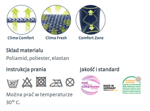 - Увесь компресійний одяг і колготки (круглого та плоского трикотажу), антитромботичні панчохи та опори регулярно перевіряються та оцінюються відповідно до стандарту OEKO-TEX 100 на вміст речовин, шкідливих для людини та навколишнього середовища.