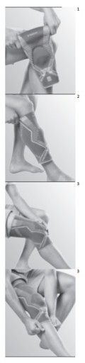 - Натягніть стабілізатор на коліно так, щоб силіконове кільце охоплювало колінну чашечку по центру і без тиску.