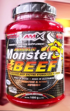 Anabolic Monster Beef Protein, to produkt który w 90% składa się z albuminy wołowej, która obecnie jest najwyższym jakościowo źródłem białka na rynku. Dzięki hydrolizie czas trawienia białek jest znacznie krótszy. Monster Beef wzbogacony jest również monohydratem kreatyny, zwiększając dzięki temu potencjał energetyczny, energię, regenerację oraz wzrost masy mięśniowej. Monster Beef zawiera również Nitro Shot Complex dzięki któremu, wszystkie niezbędne składniki zostaną błyskawicznie dostarczone do włókien mięśniowych. Produkt ten ponadto, zawiera Phosphomatrix, który zapewnia dostarczenie wszystkich niezbędnych minerałów, które pełnią kluczową rolę w organizmie każdego atlety.