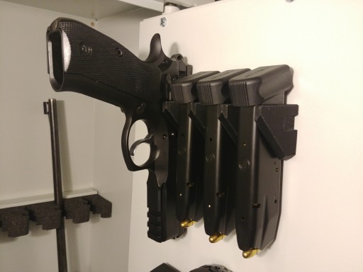 MHS - Magnetic Holder System - для зберігання магазинів у збройових сейфах. Підходить для всіх подвійних пістолетів від .22 LR до .45 ACP. Виготовлений з матеріалів найвищої якості. Кожен з окремих елементів можна вільно поєднувати з іншими частинами системи MHS.