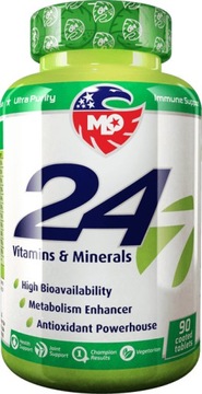 MLO 24/7 to składający się z aż 24 składników kompleks witaminowo–mineralny, w którym oprócz najbardziej popularnych substancji znajdziemy także tak nietypowe jak mangan czy molibden, których rola jest jednak bardzo istotna.
