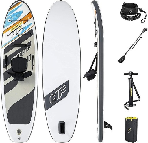 Paddleboard Hydro Force White Cap Combo - це легка надувна SUP-поплавка з категорії Allround, яка призначена в першу чергу для стабільного катання на тихих і злегка поточних водах. Паддлборд має товщину 5", ширину 32" і довжину 10'0". Об'єм дошки становить 272 літри, вага - 11,1 кг, дошка призначена для дорослої людини або сім'ї вагою до 110 кг.Паддлборд оснащений знімним базовим сидінням каяка зі складаним веслом, тому його можна час від часу використовувати як сидячий каяк.Це надувний паддлборд (SUP) довжиною 305 см, шириною 81 см і висотою 12 см. виготовлена за двошаровою технологією DROP-STITCH.Дошка оснащена знімним центральним ребром.Поверхня дошки покрита протекторним шаром EVA, який дуже приємний і в той же час забезпечує достатнє зчеплення проти ковзання.Перевага надувних SUP-ів – це в першу чергу їх здатність складатися і легко транспортуватися.Падлборд і всі аксесуари до нього можна упакувати в транспортний рюкзак.