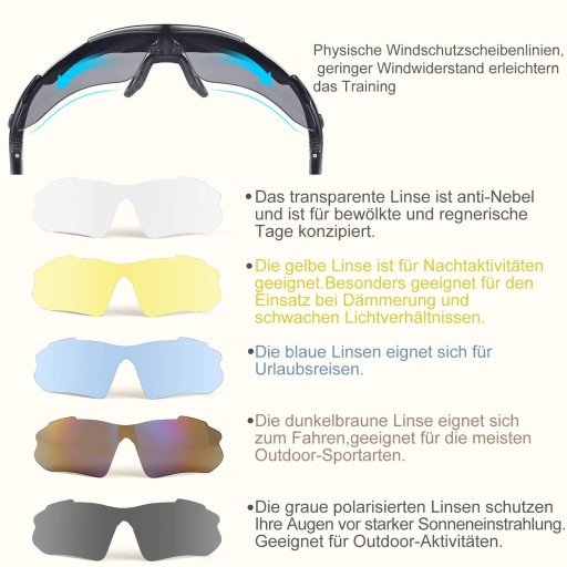 5 змінних лінз: поляризаційні спортивні окуляри з можливістю вибору різних лінз для різних умов освітлення. Лінзи можна легко та гнучко замінити.