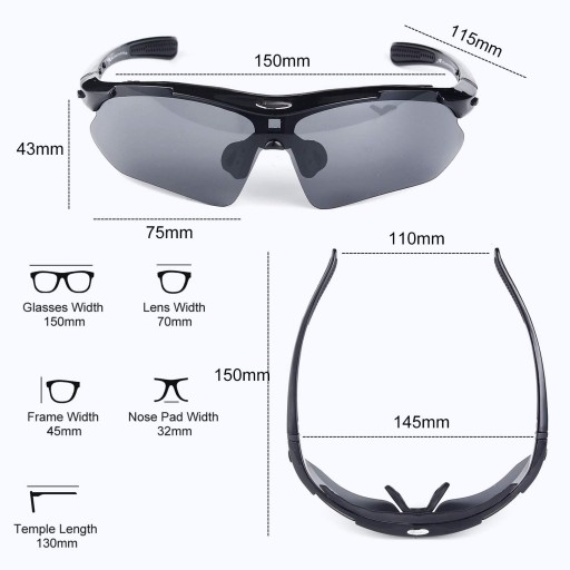 Міцний і легкий дизайн: окуляри виготовлені з високоякісного ПК-полімерного матеріалу, високоміцної та ударостійкої ПК-лінзи, надзвичайно гнучкі та міцні. Спортивні окуляри важать всього 30 г, оправа легка, окуляри зручні. 100% захисне покриття UV400, запобігає 100% шкідливим UVA та UVB променям.