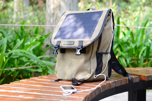 1. Рюкзак із функцією сонячної зарядки, завдяки сонячній панелі, підключеній до портів USB і входу типу B.