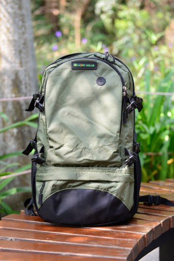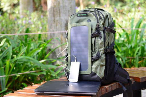 1. Рюкзак із функцією сонячної зарядки, завдяки сонячній панелі, підключеній до портів USB і входу типу B.