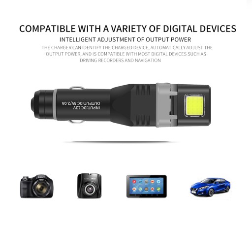 Компактний ліхтарик 3в1 з живленням від прикурювача, ідеально підходить для роботи в майстернях, потужний діод COB забезпечує гарне розсіювання світла.