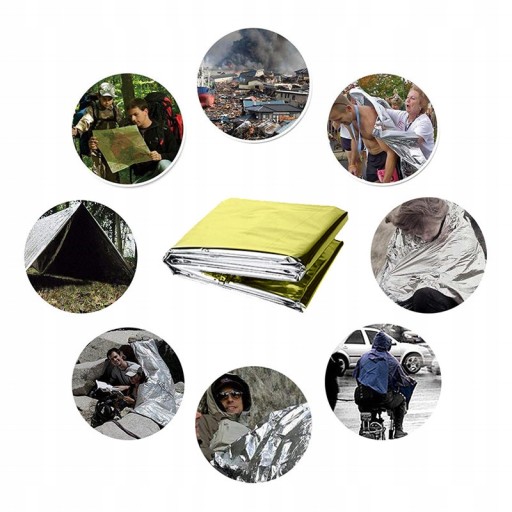 Плівка водо та вітронепроникна. Захищає тіло від охолодження (срібна сторона) або також покриває комфорт. Обов'язкове обладнання в шкірній аптечці. Він зберігає 90% тепла людського тіла.