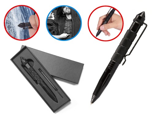 Головка ручки (ковпачок) служить розбивачем скла. Профільований конус пера дозволяє легко і безпечно працювати з такими матеріалами, як скло, листовий метал, дерево або пластик. Тактична ручка буде ефективно працювати насамперед як т.зв. куботан на агресивних нападників. Завдяки своїй непомітній формі тактична ручка непомітна, а еластичний затискач дозволяє її легко носити. Рифлений і нековзкий корпус ручки гарантує міцне захоплення, а відповідна текстура ручки дозволяє ефективно і безпечно утримувати її під час ударів.