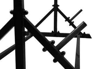 Drążek składa się z mocnej i masywnej ramy, wykonanej z grubej stali malowanej proszkowo. Pionowe profile są złączone dwoma poprzecznymi, nadając całości stabilności i wytrzymałości. Dodatkową stabilizację zapewniają mocne, skośne podpory.