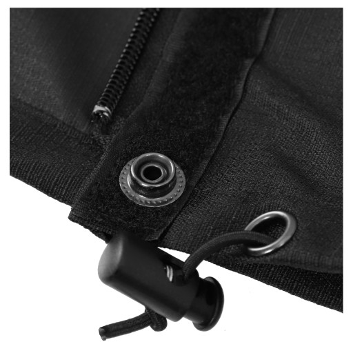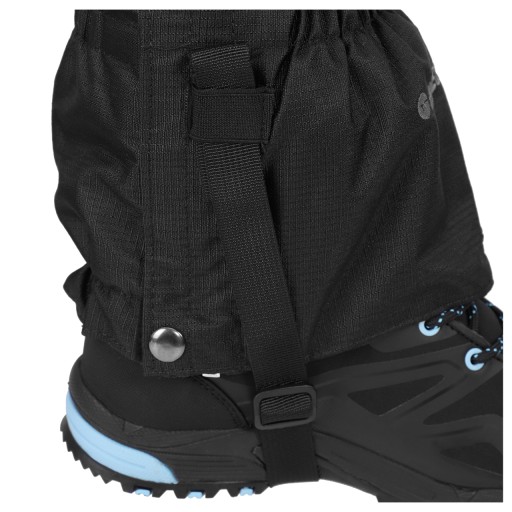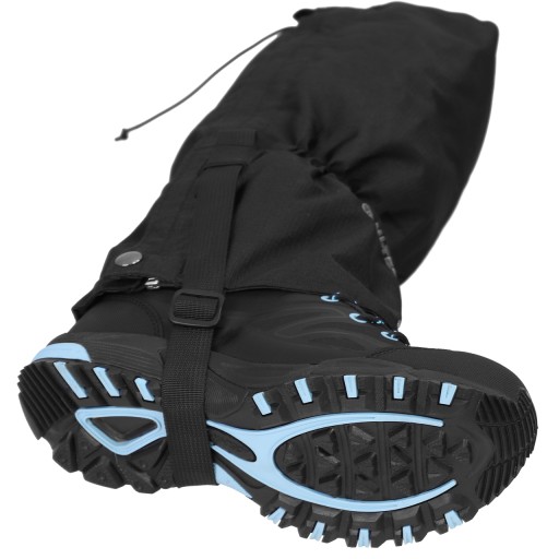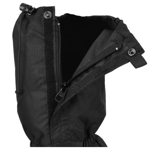 Стійкий до забруднень і намокання. Вони ідеально підходять для вологих лугів і снігу. Застібається на блискавку, захищена водонепроникним і вітронепроникним клапаном, який застібається на липучку і застібки. Гачок, закріплений на шнурках, і регульований ремінець стабілізують гетри, тобто вони не змінюють свого положення під час ходьби.
