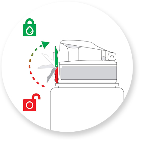 Завдяки спеціальному замку кришки вам не доведеться турбуватися про випадково розлитий напій. Кришка додатково захищає мундштук від забруднення.