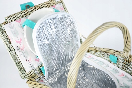 ✅Кошик оснащений пряжкою із застібкою та зручною ручкою для зручного транспортування. Всередині кошик обшитий красивим матеріалом, який забезпечує герметичність і покращує естетичність. Крім того, всередині кошика є кріплення для захисту посуду під час транспортування.